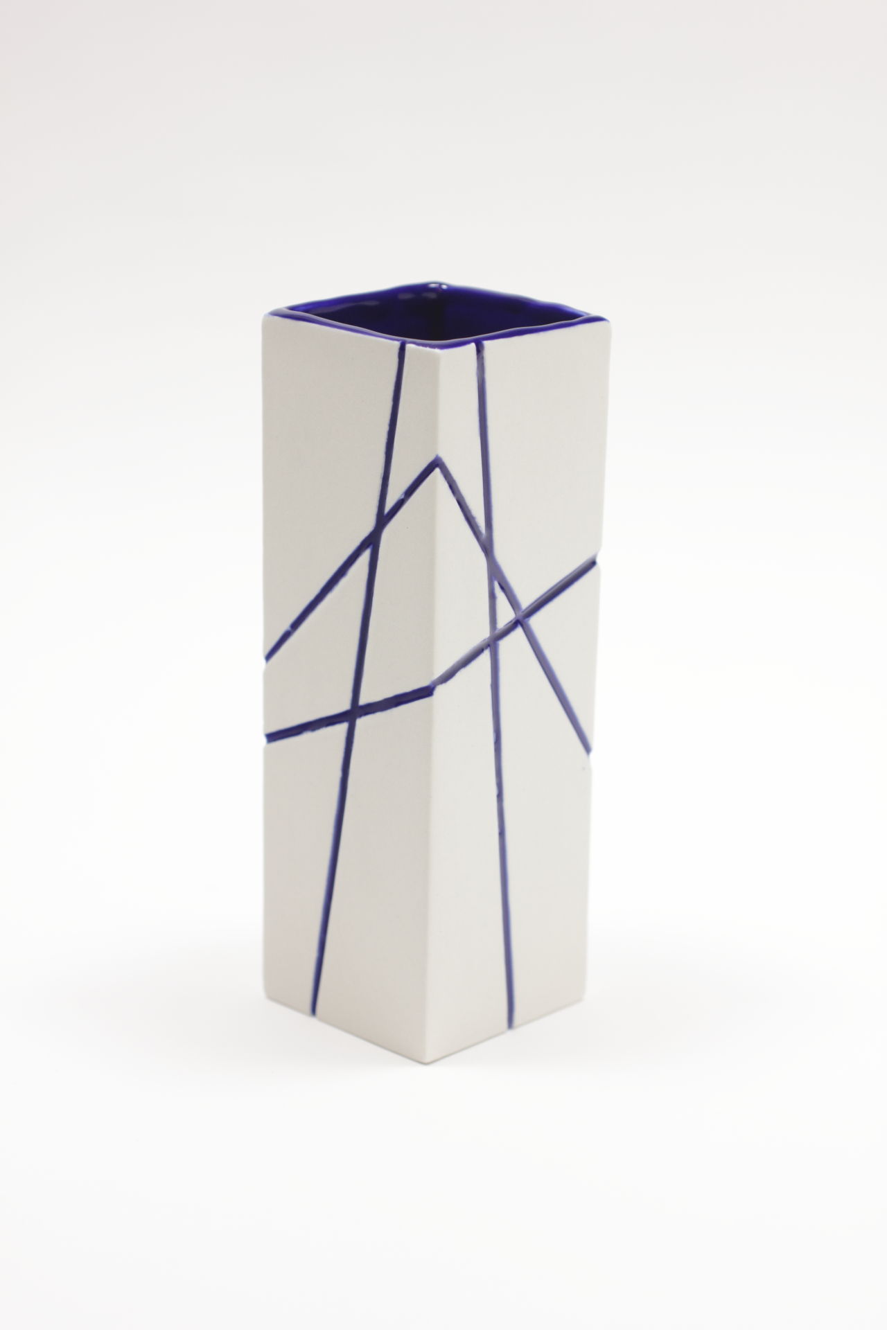 The fragmented form with glazed lines.